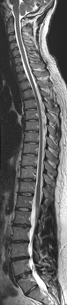 MRI is the preferred method of imaging the spine. Exquisite detail of bones, ligaments, cartilage and the spinal cord with its individual nerve roots are well seen. Pathologies that can be visualized within the spine include fractures, arthritic changes, inflammatory conditions, tumors, MS, traumatic spinal cord injuries, malformations of the blood vessel (AVM or AV Fistula) and disc protrusions.